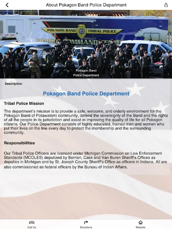 This app is for the employees of Pokagon Band Police Department, their families, and the community they serve. This app contains information about the department as well as safety and crime prevention tips. Pokagon Band Police Department employees and their families will have access to a full range of wellness tools.