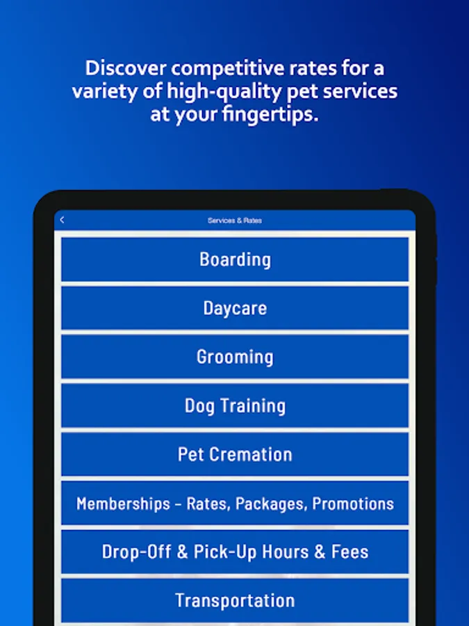 Download our app and have instant access to all the information you need to manage your dog’s boarding and daycare needs right from the convenience of your mobile device.