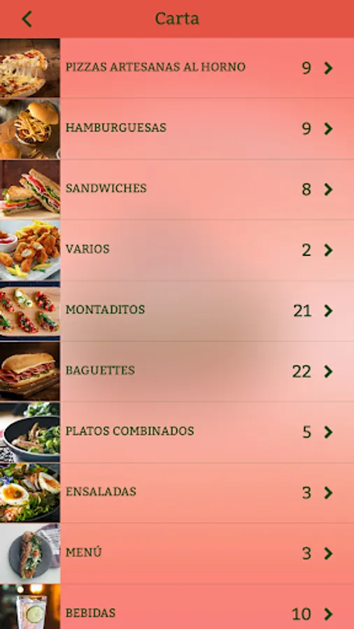 Choose from a wide variety of hamburgers, pizzas, salads, montaditos, baguettes, offers and combinations of dishes.