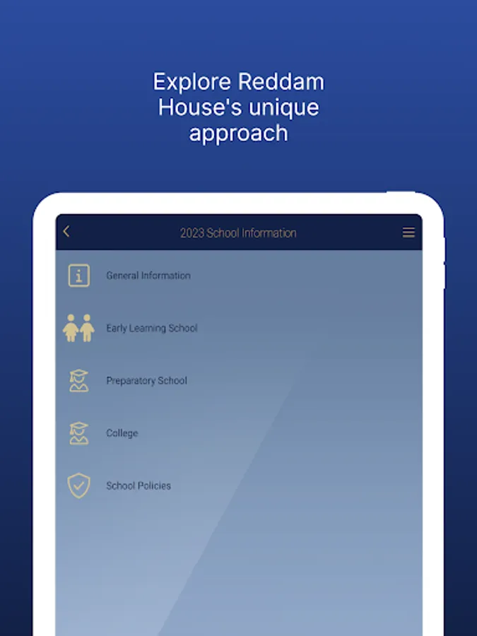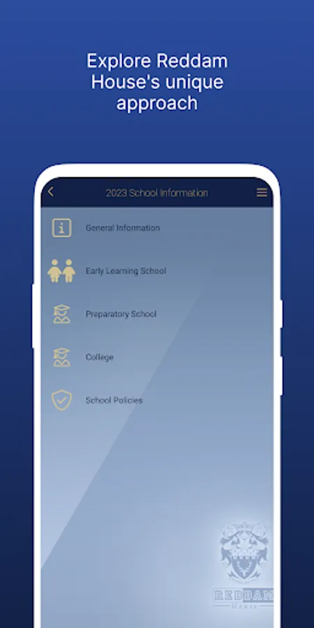 Reddam House caters for: Early Learning Stages (ages 2 - 6), Preparatory (Grades 1 - 7) and College (Grades 8 - 12) students.
