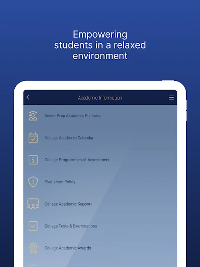 Pre-primary (ages 3 - 6), Preparatory (Grades 1 - 7) and College (Grades 8 - 12) students.
