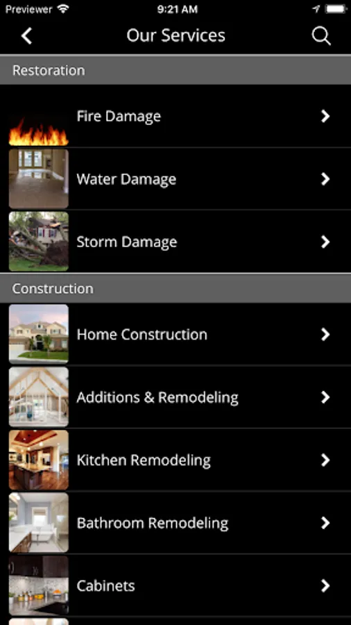 Mobile app for quickly contacting Rumsey Construction and Restoration.