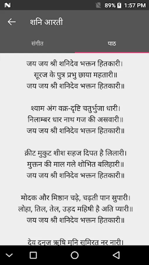 The Shani Chalisa app contains features: