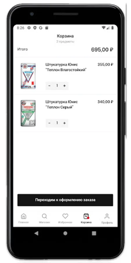 In our application, it is easy to place an order, both with delivery, on the day of order, and pickup from our construction supermarket. Additionally, you can order the lifting, unloading and return of surplus goods. Payment by credit card, cash or Loyalty Program Points.