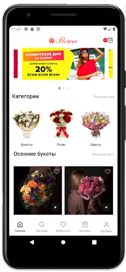 Install the Flowee app and you will always have a catalog with current prices for bouquets at your fingertips. We always have fresh flowers in stock that will delight you and your loved ones.