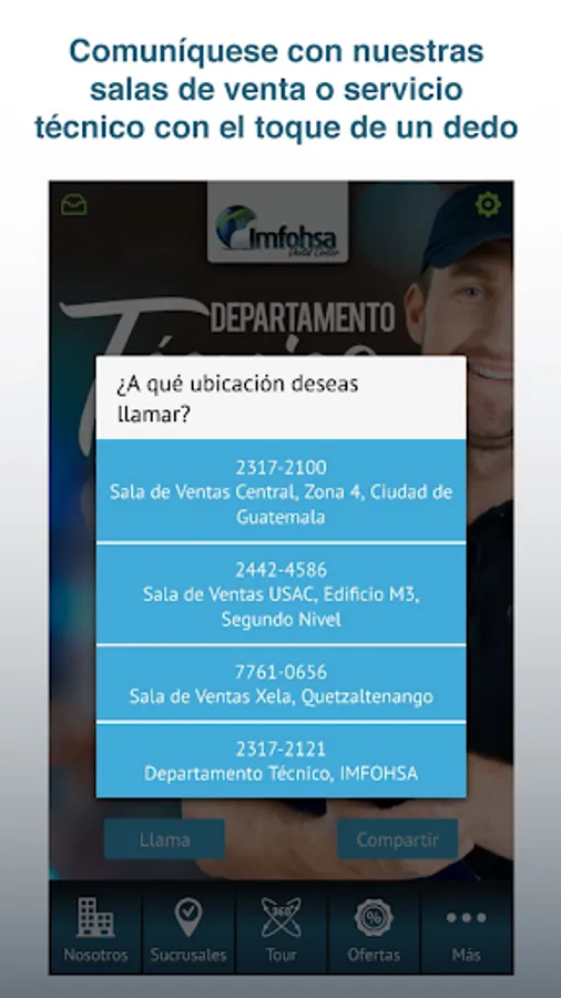 Through the app IMFOHSA you can contact our sales rooms or service at the touch of a finger, receive notifications to take advantage of offers or learn new features, consult the manuals and information about their teams and be aware of all events , conferences and training.