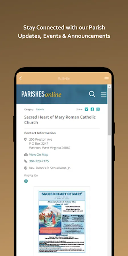 Welcome to the Sacred Heart of Mary Church app. The app will provide push notifications to help with communication, contact information, news and much more. Sacred Heart of Mary Church is located at 200 PRESTON AVENUE WEIRTON, WV 26062.