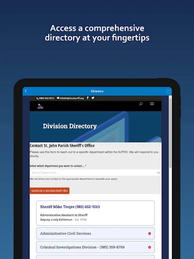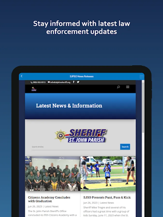 The newly 2023 updated St John Parish Sheriff’s Office (SJPSO) proudly serves the residents of St John Parish, Louisiana. Our mobile App is completely free and allows you to connect to SJPSO alerts, messages, services, and support. Please let us know if there is anything we can do to improve the App to serve you better. NOTE: The App must not be used in an emergency. Dial 911 to receive immediate assistance.