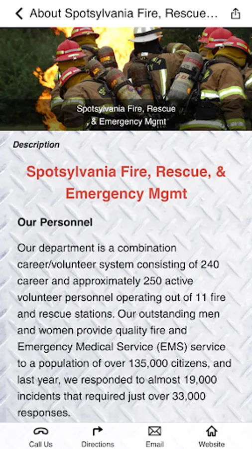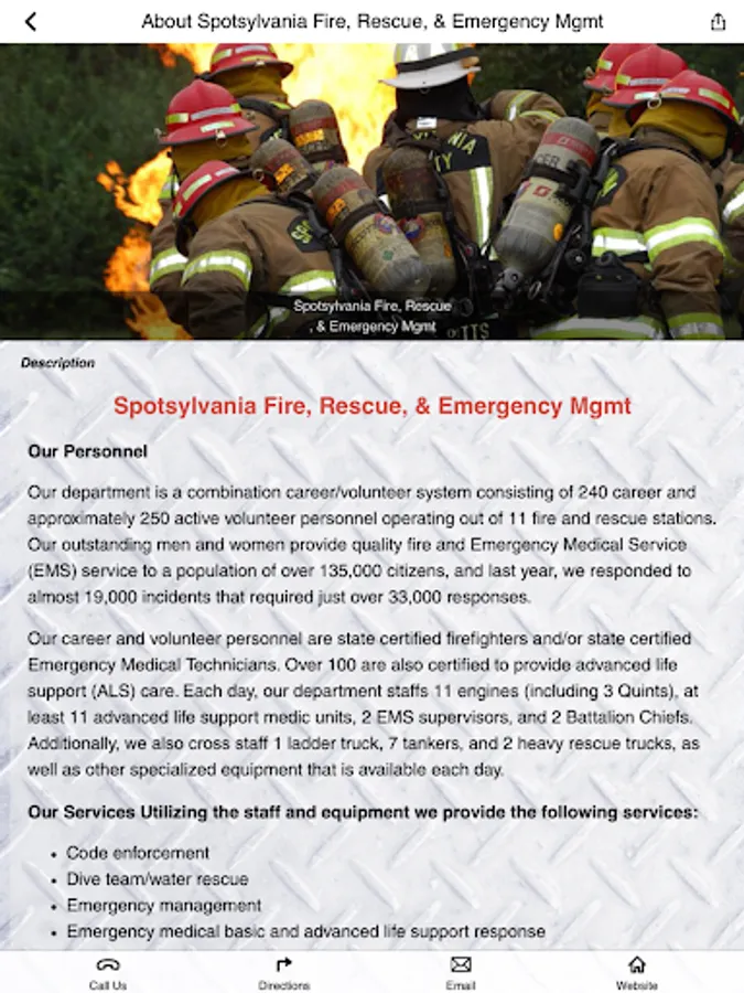 This app is for the employees of the Spotsylvania Fire, Rescue & Emergency Management, their families, and the community they serve. This app contains information about the department as well as safety and crime prevention tips. Spotsylvania Fire, Rescue & Emergency Management employees and their families will have access to a full range of wellness tools.