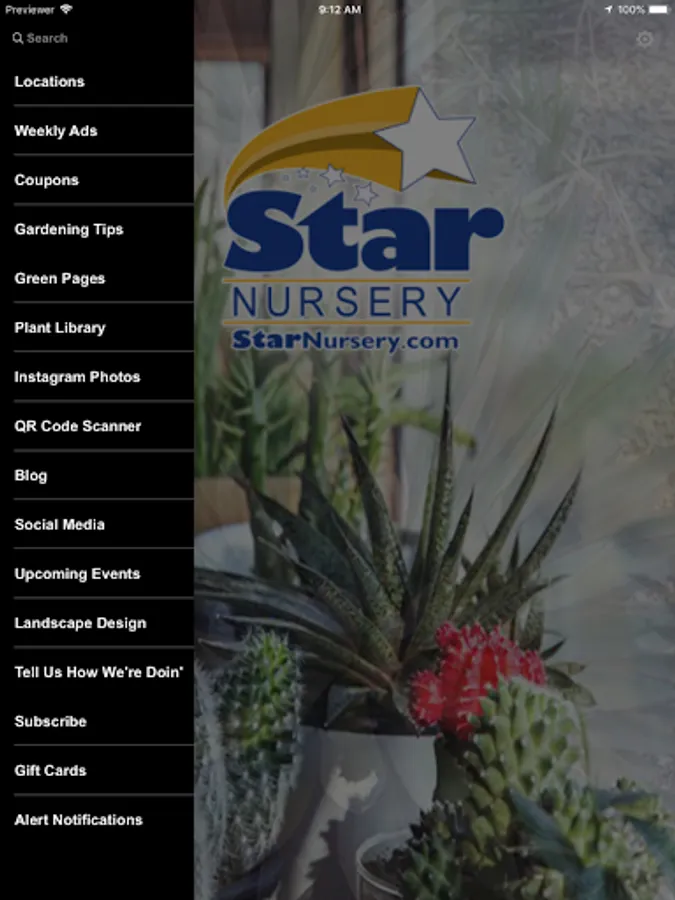 Star Nursery has developed this app to provide quick and convenient access to: Find our Weekly Ad, Star Notes with detailed explanations on plant care, Find the nearest location, Find current coupons we are offering, check out our upcoming events and social media sites.
