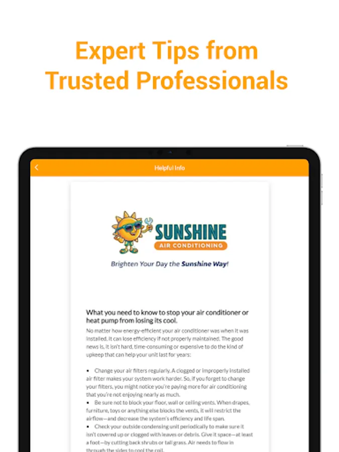 - Sharing capability so you can refer us to your friends and family that may need ac or furnace help as well.