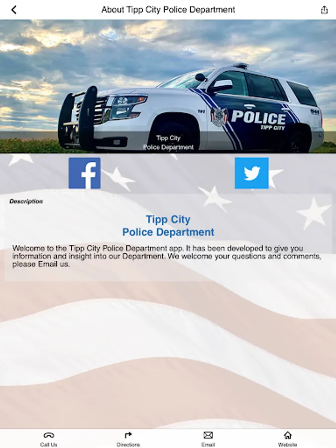 This app is for the employees of the Tipp City Police Department, their families, and the community they serve. This app contains information about the department as well as safety and crime prevention tips. The Tipp City Police Department's employees and their families will have access to a full range of wellness tools.