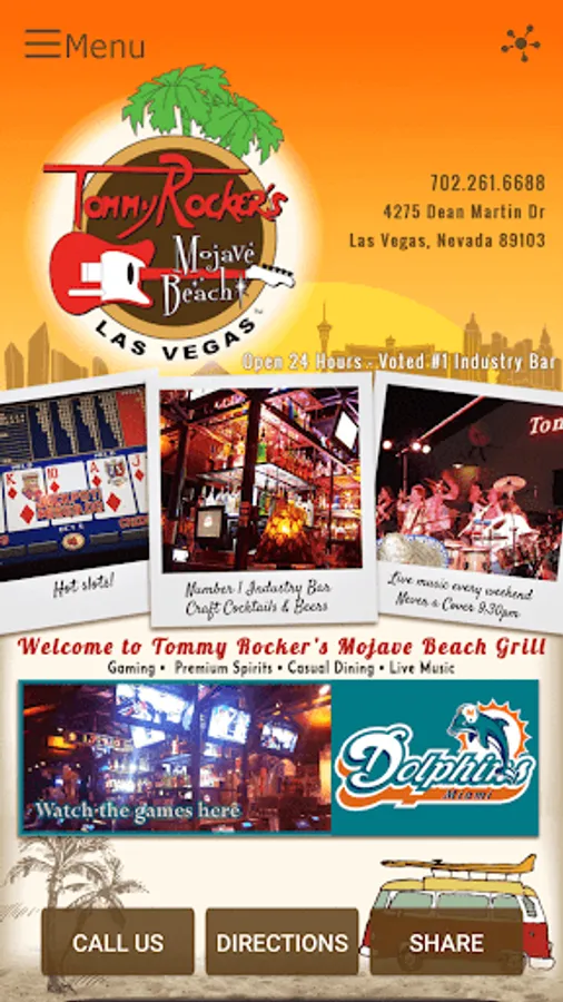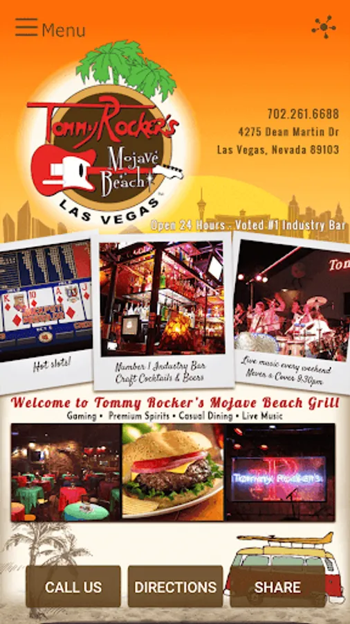 Tommy Rocker’s is located in the heart of Las Vegas just west of the famous “Las Vegas Strip” at 4275 Dean Martin Drive.