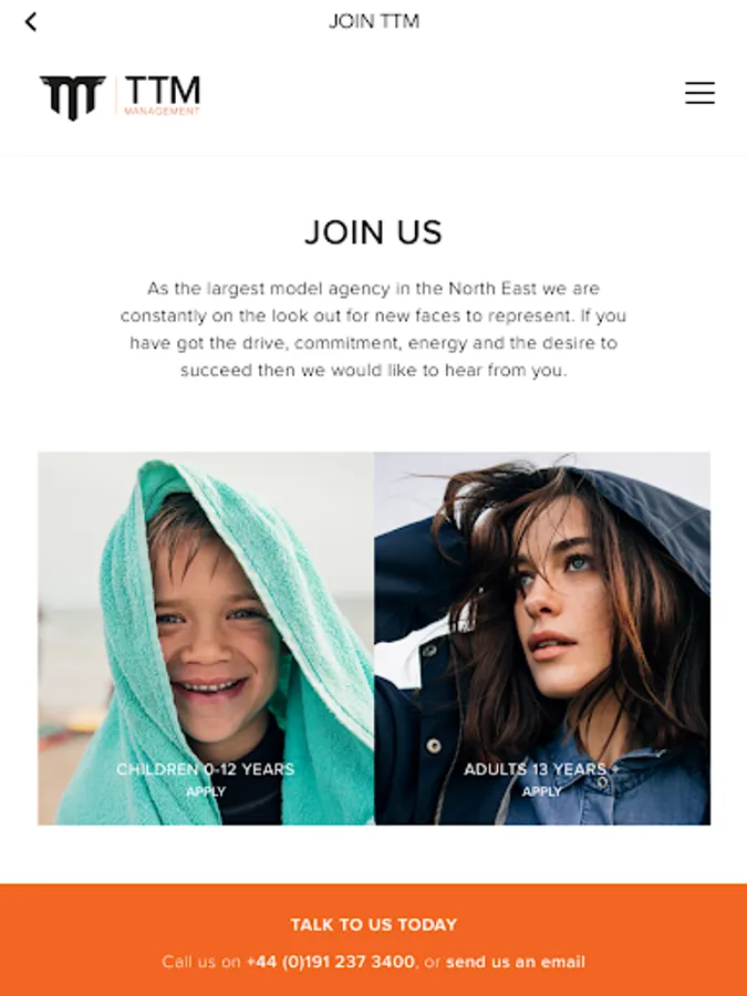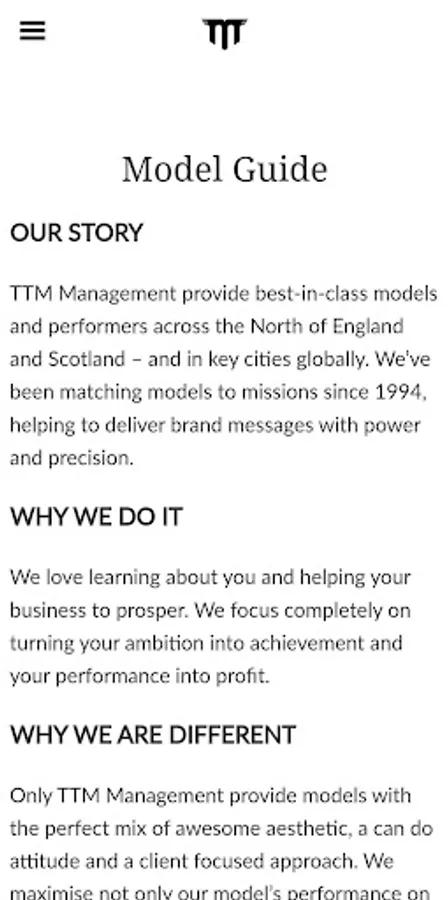 This app is for members of TTM and people looking to join. TTM Management provide best-in-class models and performers across the North of England and Scotland – and in key cities globally. We’ve been matching models to missions since 1994, helping to deliver brand messages with power and precision.