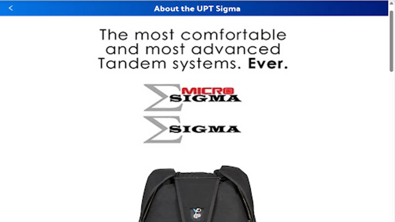 Our UPT Sigma Mobile App is designed to complement our service and to offer the comprehensive support our customers, dealers, examiners and instructors have come to expect from Uninsured United Parachute Technologies, LLC (UPT).