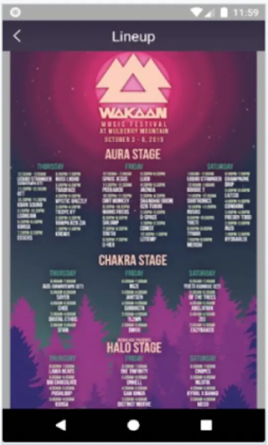 The official Wakaan Music Festival app for all can’t-miss festival information! Check out the Wakaan Festival lineup, gain access to helpful event info, buy tickets, view maps, and much more. The app contains all your need-to-knows for the weekend so you can enjoy Wakaan Music Festival to the absolute fullest.