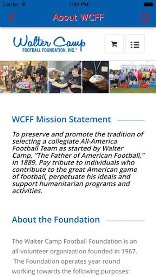 The Walter Camp Football Foundation app provides event information, fan cam, gallery, main contacts and more as part of our National Awards Weekend and throughout the year.