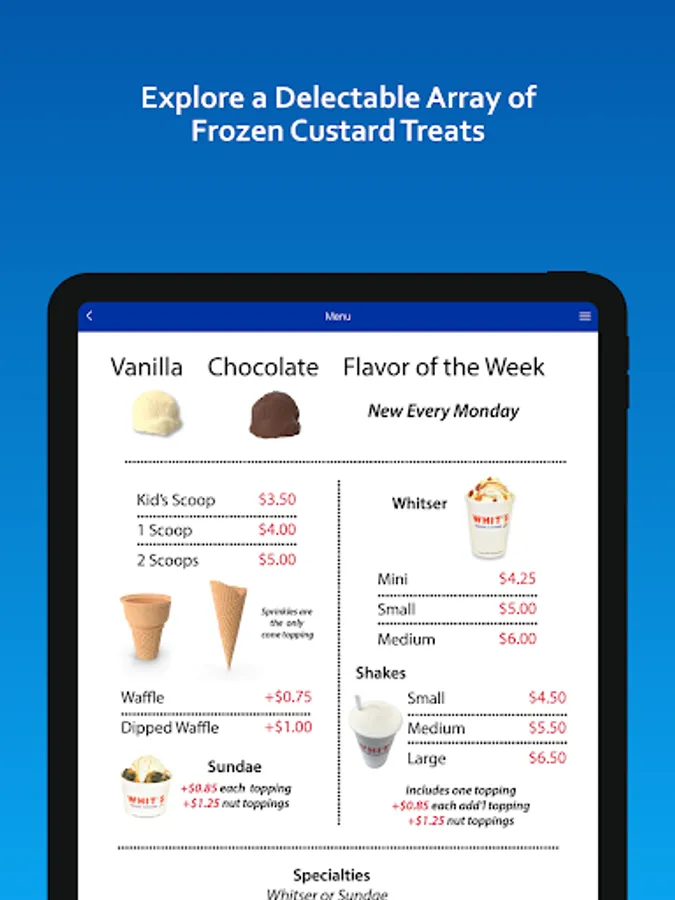 Whit's up frozen custard fans all around middle TN! With the Whit's app, you can earn rewards, order amazing custard cakes, check out our specials, and more!