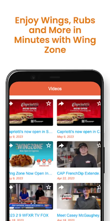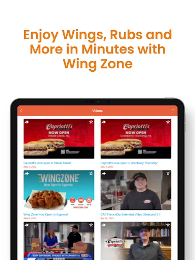 The Wing Zone app is your way to order wings, tenders, and more. This is your way to order flavor, really fast. Try one of our 18 award-winning, flavors, and rubs with your favorite original or boneless wings, or get adventurous and try one of our massive hand-breaded tenders. Get it delivered, or take it to go!