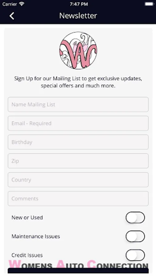 The Womens Auto Connection mobile app will allow women to get EXACTLY WHAT THEY WANT!