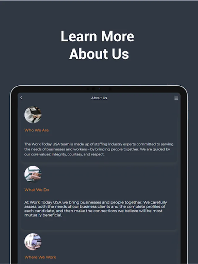 Work Today USA is an APP based flexible solution that helps connect workers with businesses.