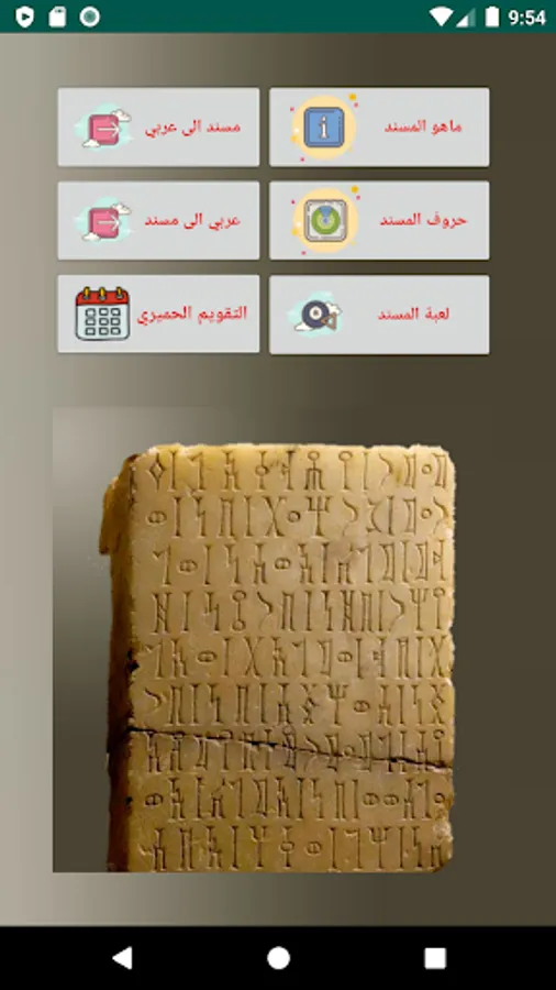 Program for writing in the letters of the Arabic Yemeni Musnad, conversion from and to Arabic, the Himyari calendar and the game of learning the letters of the Musnad.