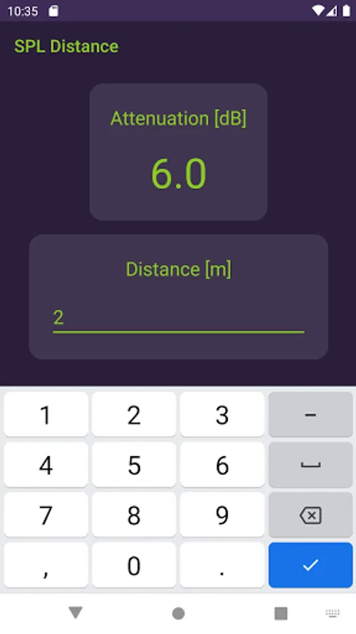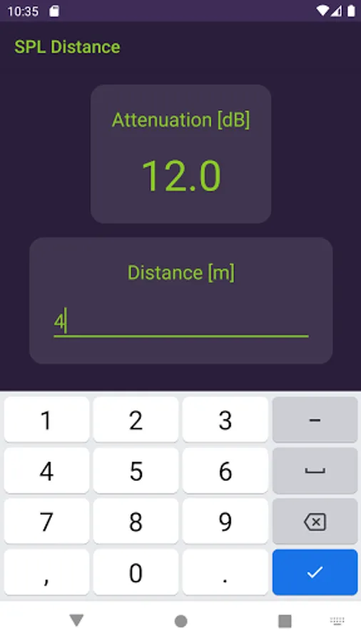 This app shows how decays the Sound Pressure Level (SPL) depending on distance in ideal free field conditions.