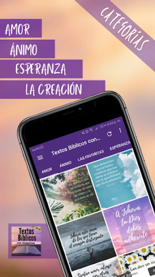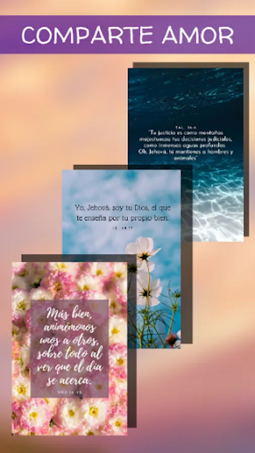 Its new application of biblical texts contains a great variety of images with biblical quotes based on love, faith, promises, hope, confidence, strength, encouragement, peace, joy, with which you can share with your loved ones and build also your life with a beautiful message from our Loving God.