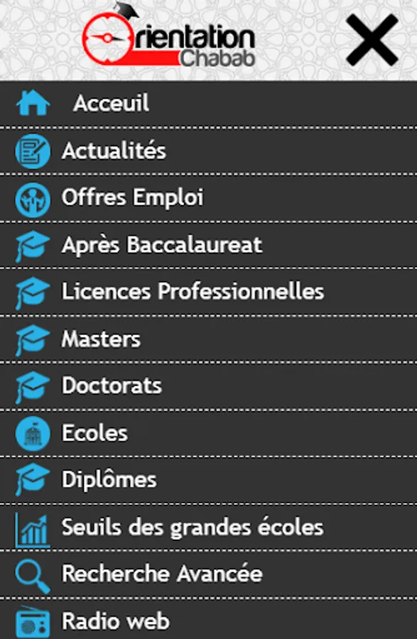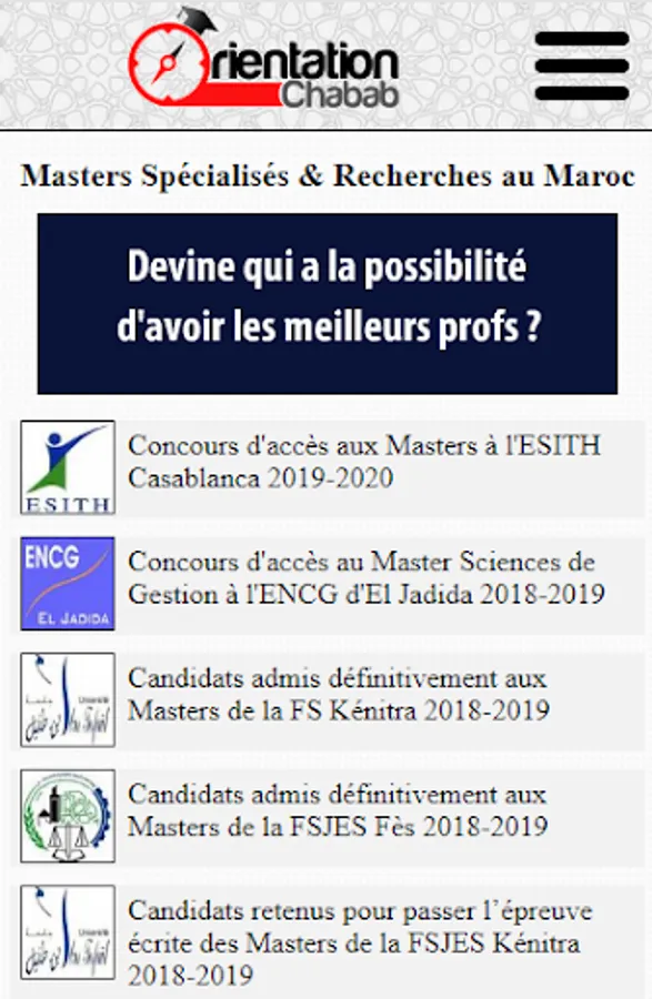 Application of guidance chabab is a guide for high school graduates, high school students and Moroccan students for access to universities and private and public higher schools in Morocco.
