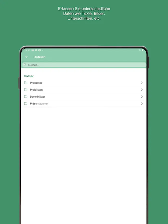 You can simply create folders in the web portal and upload structured files such as PDFs, images or Office documents, which in turn are automatically synchronized to your end devices. So you always have the most up-to-date, centrally maintained versions of your documents with you.