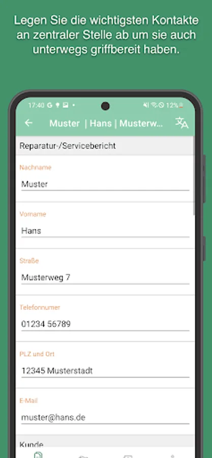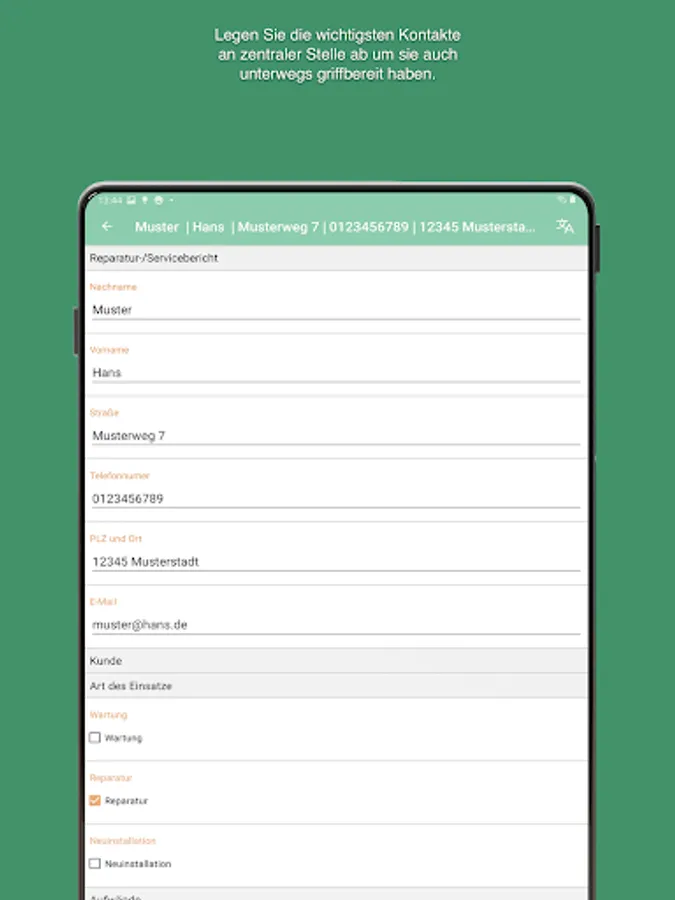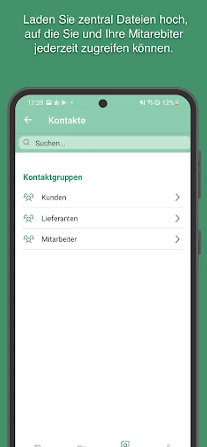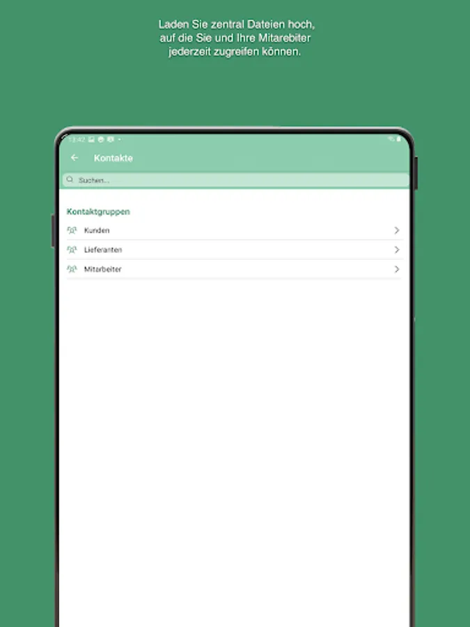 You can also easily manage a central contact book by maintaining the contact details of your contact persons at suppliers and customers or even your employees in the web portal. This data, like the uploaded documents, is automatically transferred to the mobile devices and is always up-to-date.