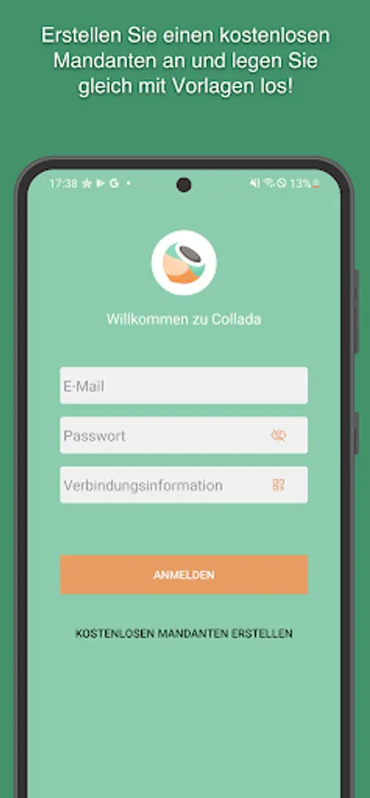 All your data, whether forms, recorded data, uploaded documents or contacts are end-to-end encrypted. A one-time password is generated when you create your Collada client. This is used in your devices to encrypt and decrypt all your data locally on the device. Encrypted data that cannot even be read by us as the operator always ends up in the cloud. You can easily exchange the password between the end devices that you want to allow access to your data using a QR code. This means that you always have full access control over your data.
