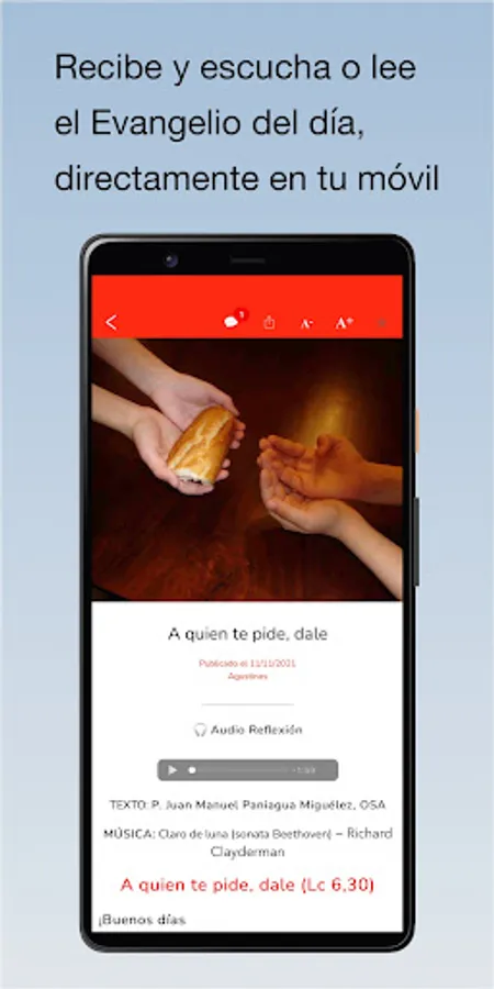 Application focused on the task and Augustinian pastoral accompaniment. In it you will find the Gospel of the day, prayers, activities, Challenges with which you can earn points and some prizes, vocational accompaniment, good morning, Augustinian calendar, Missions + Justice and Peace, information and registration for events and a personalized communication channel and direct.