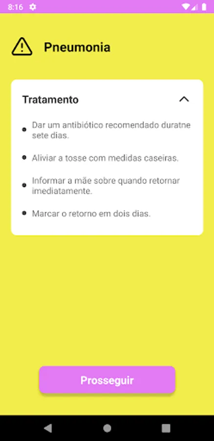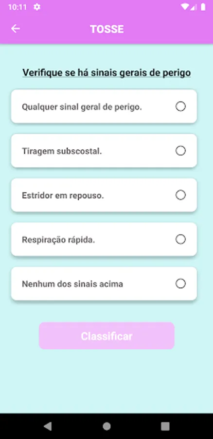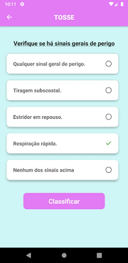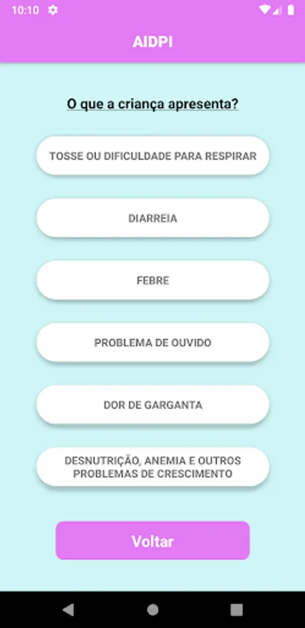 Application based on the 2017 IMCI Procedures Table Manual. Which objectively classifies the severity level of diseases prevalent in childhood, such as cough or difficulty breathing, diarrhea, fever, ear pain, sore throat, malnutrition, anemia and other problems of growth.