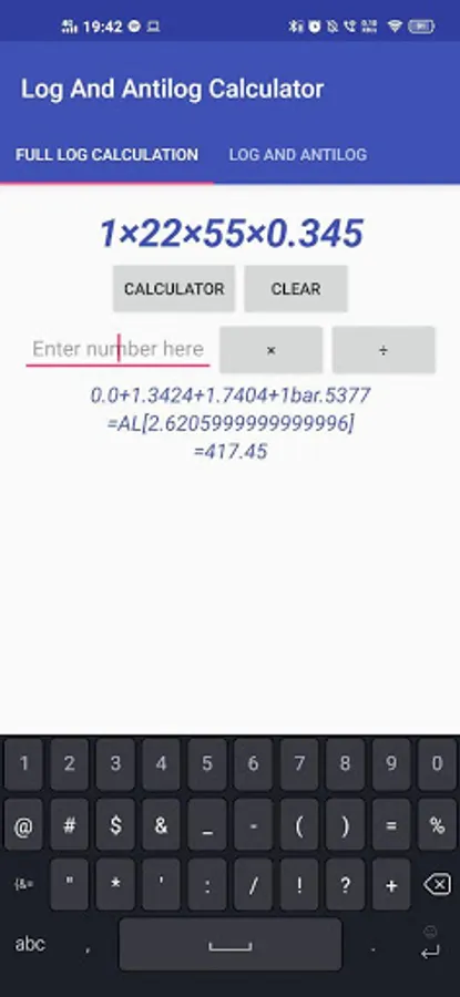 1. Full log calculation - Use this app as a calculator to solve the whole calculation. Complete the addition and subtraction in the inbuilt calculator as this part does not require logs. Leave the multiplication and division part for full log calculation. It will give you step by step answers for your solution.