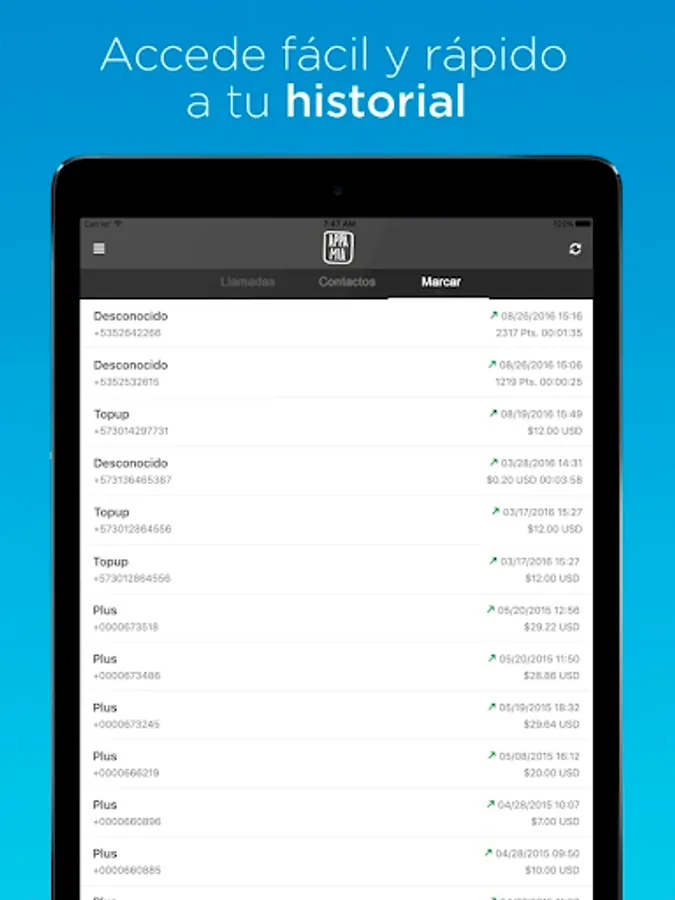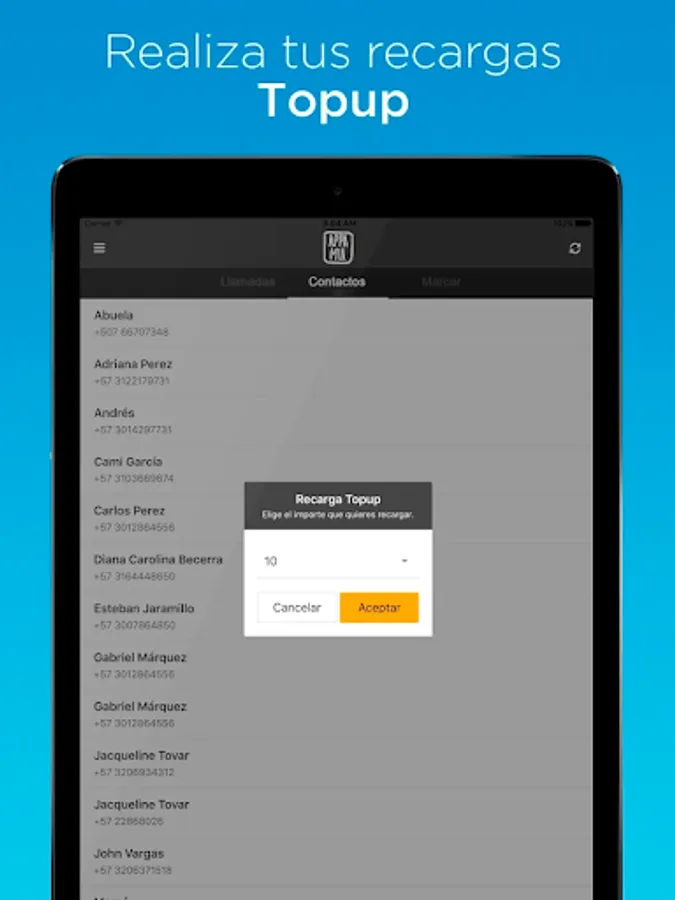 Appa Mia gives you free calls to any destination, for ALWAYS! You can also recharge cell phones from around the world with the best promotions. Millions of people are happy with Appa Mia, and they stay connected with their families totally free! Calling and reloading is very easy, directly from your contact list. Remember that the contact numbers must be in international format + (country code) (number).