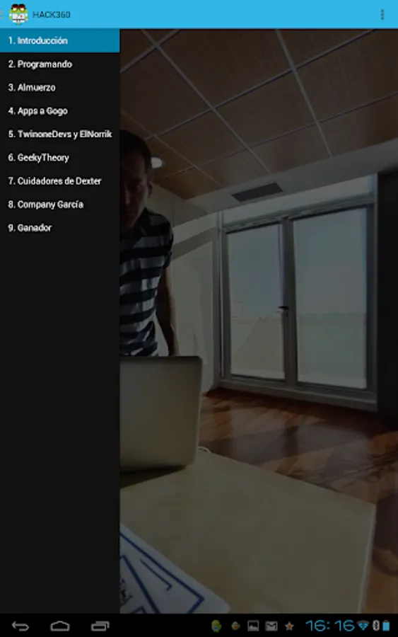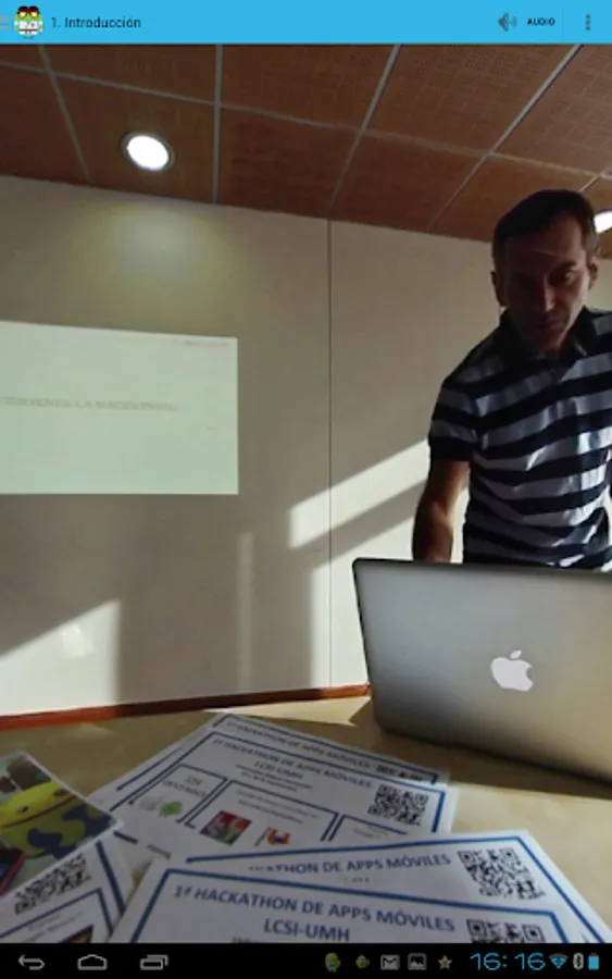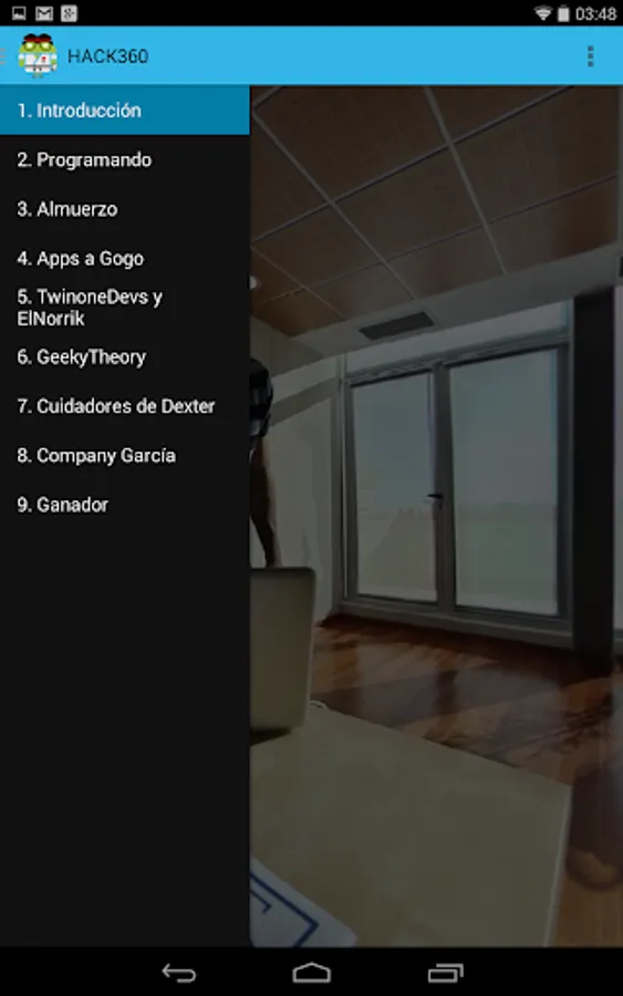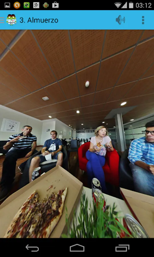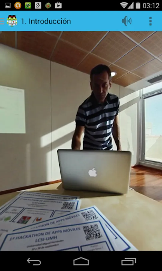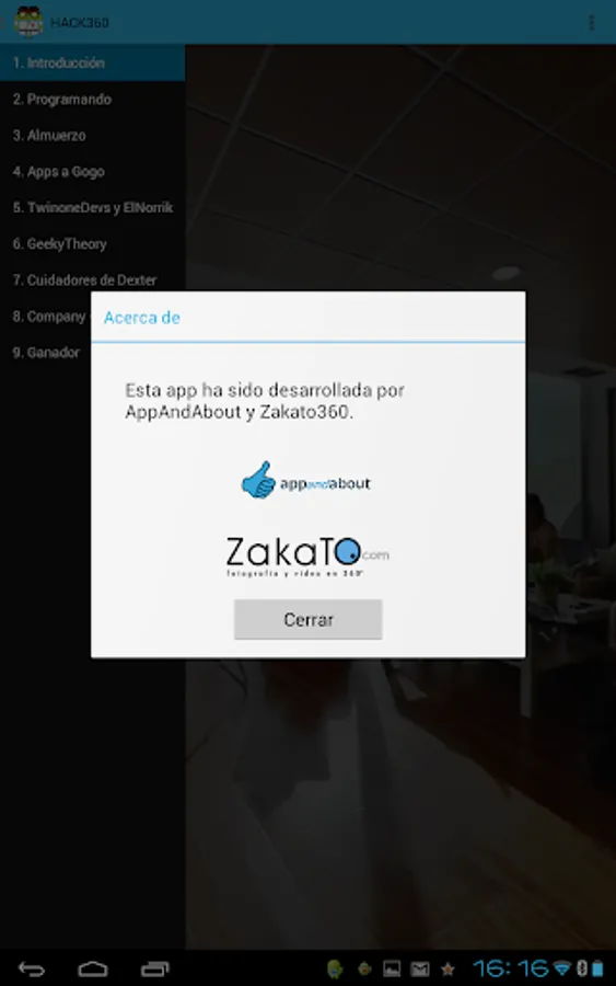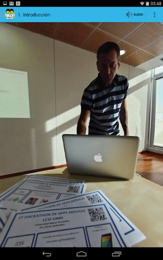 This app shows each stage of the competition by a photograph and audio 360 which includes the activity at all times. Thus, we can see the presentation of the contest, the programming stage for 8 hours stipulated, the lunch stop and presentations of projects each of the participants as well as the award winner.