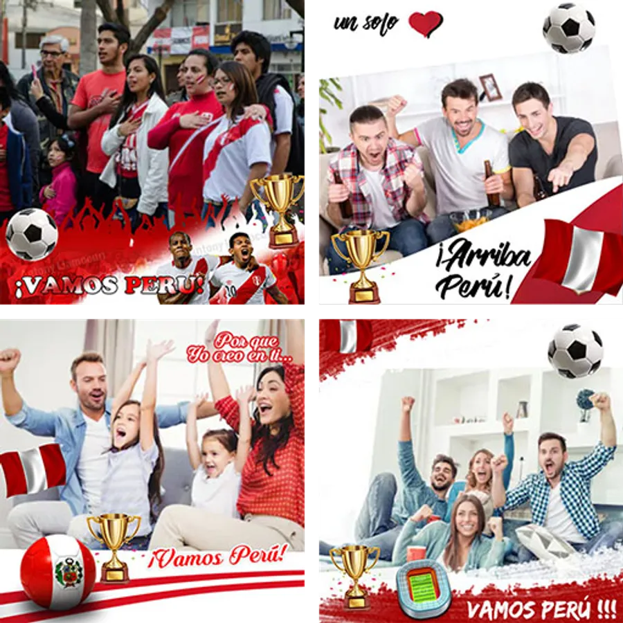 Make these photomontages and filters with any of your photos to decorate them with the flag of Peru and share in your social networks. You can use the flag of Peru as a filter and it is ideal for your profile picture, you will also find stickers of Peru and effects with shields and to support the soccer team of Peru completely free.