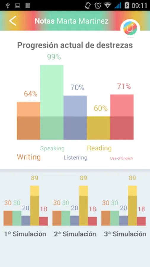 Evolution: Shows the notes obtained by the children in the examinations performed during the course.