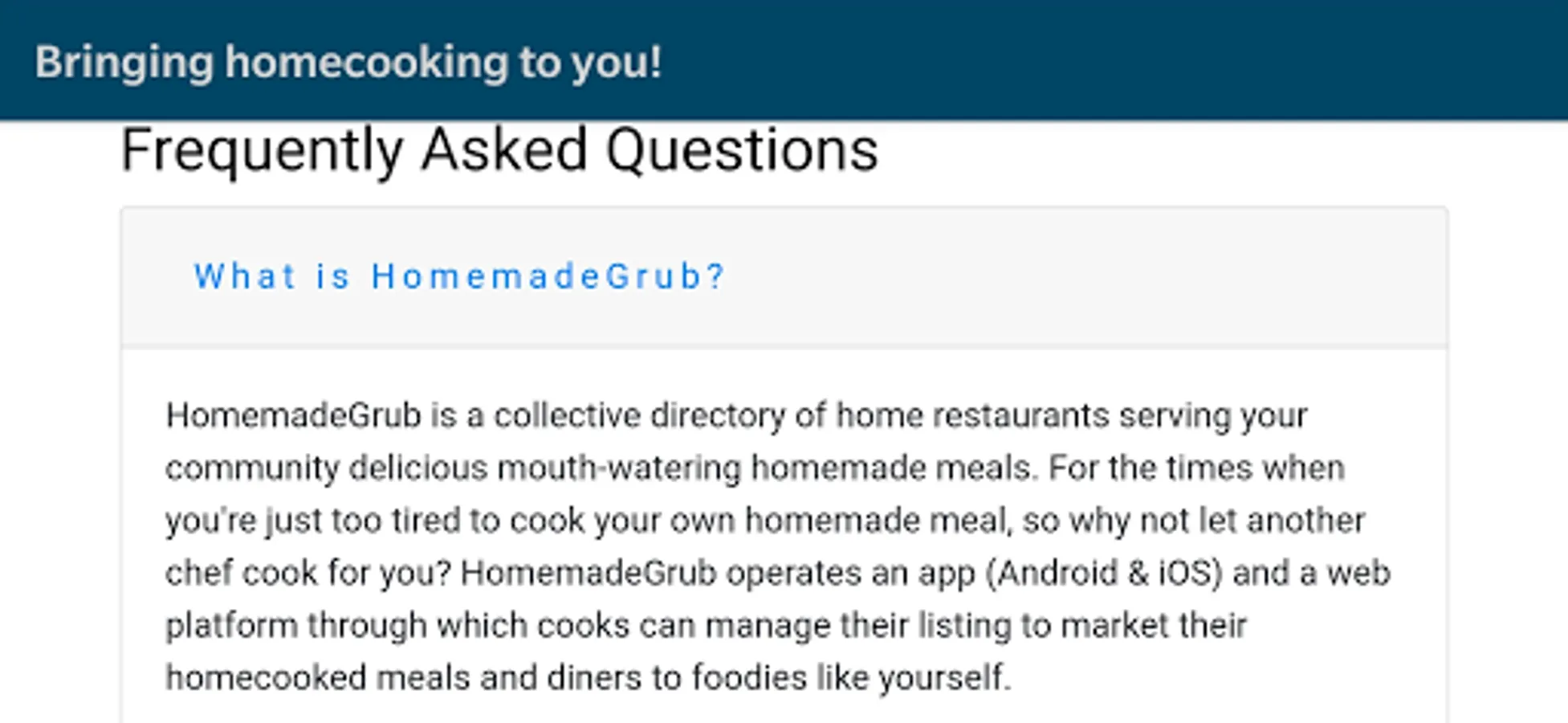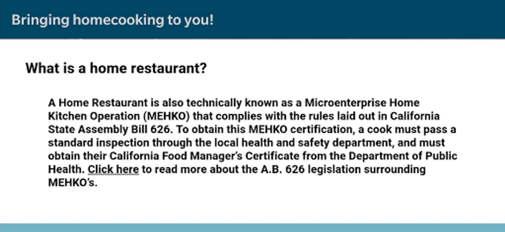 Welcome to Homemade Grub. With the Homemade Grub app you can view and order from micro enterprise home kitchen organizations (MEHKO) near you with ease, direct from your mobile or handheld device! Eat healthy, while staying safe and social distancing. Download the HomemadeGrub app or visit HomemadeGrub.com today to start your home kitchen journey of fresh yummy foods of all kinds, prepared safely in a California Department of Health registered MEHKO home kitchen near you! ORDER TODAY & ENJOY!