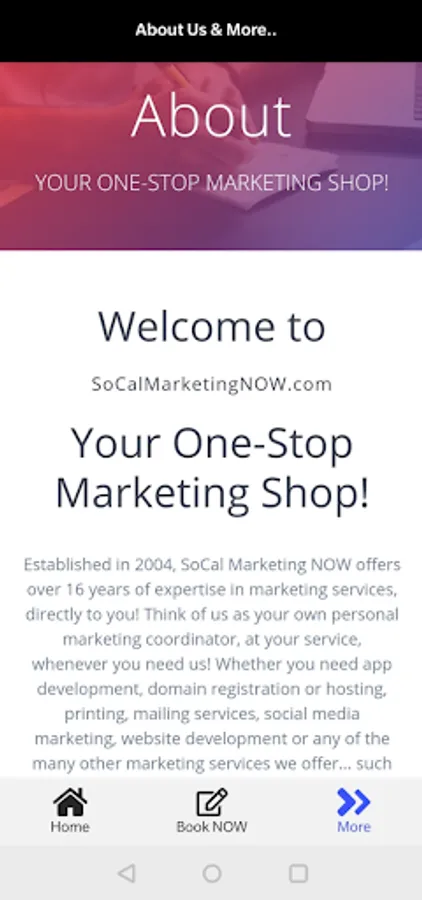 The SoCal Marketing NOW App allows you to BOOK Marketing Appointments with ease from your handheld device (Tablet or Mobile).