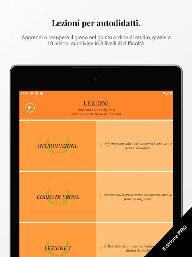 At any time you can move to the next level with the PRO Edition of the Ancient Greek App, the most advanced tool for studying the Ancient Greek language.