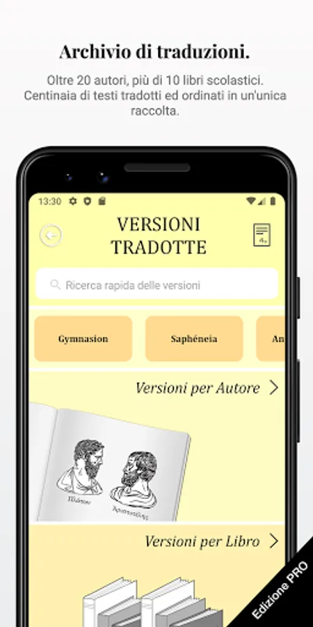 - [Pro] Strategic preparation for high school diploma: analyzes all the Greek versions released in the last 30 years at the second test of the state exam. Each version comes complete with full translated text and guided translation with step-by-step commentary.