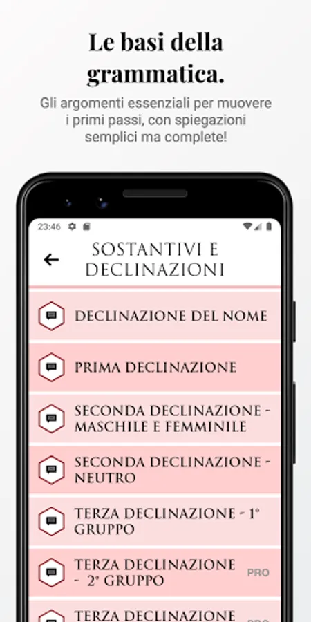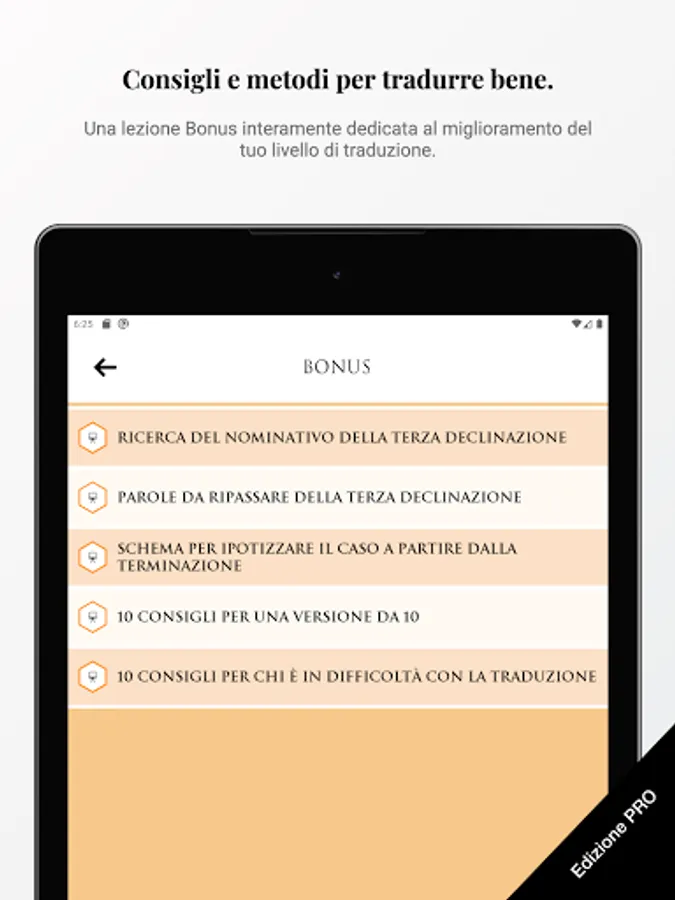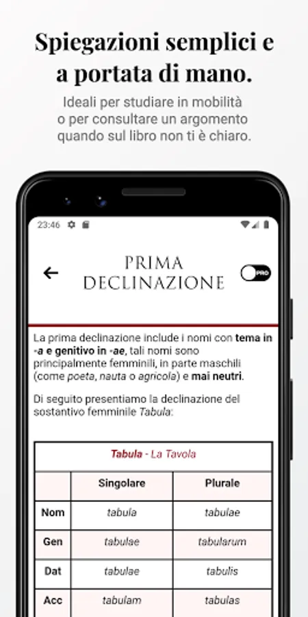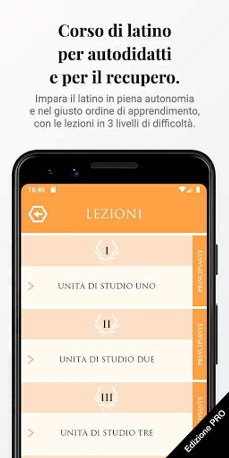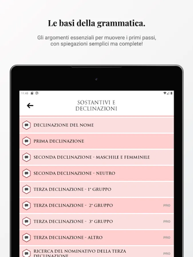 You can move to the next level at any time with the PRO Edition of iLatinista, the most advanced tool to study Latin with less stress and more effectively.