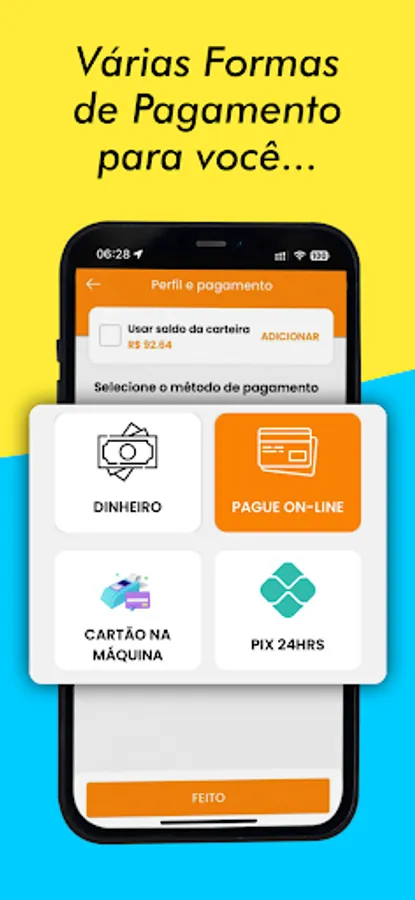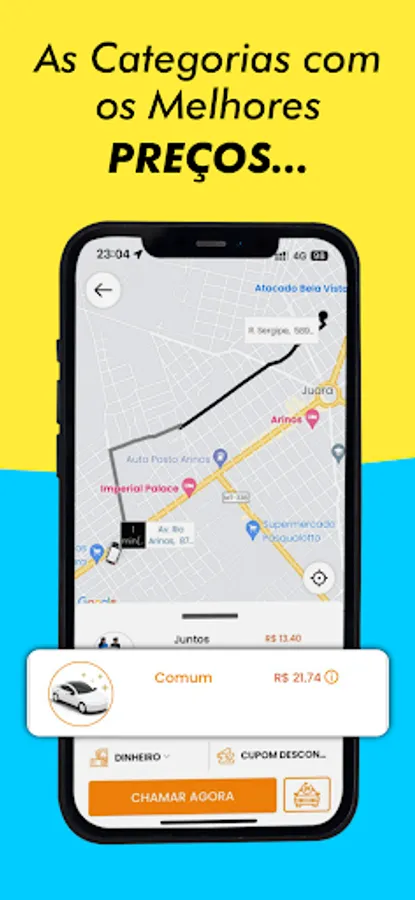The charge works like calling a normal taxi, that is, it only starts counting when you get in the car. And you have 4 payment methods within the App: Cash, Card in the machine, PIX-24Hrs and Card in the App.