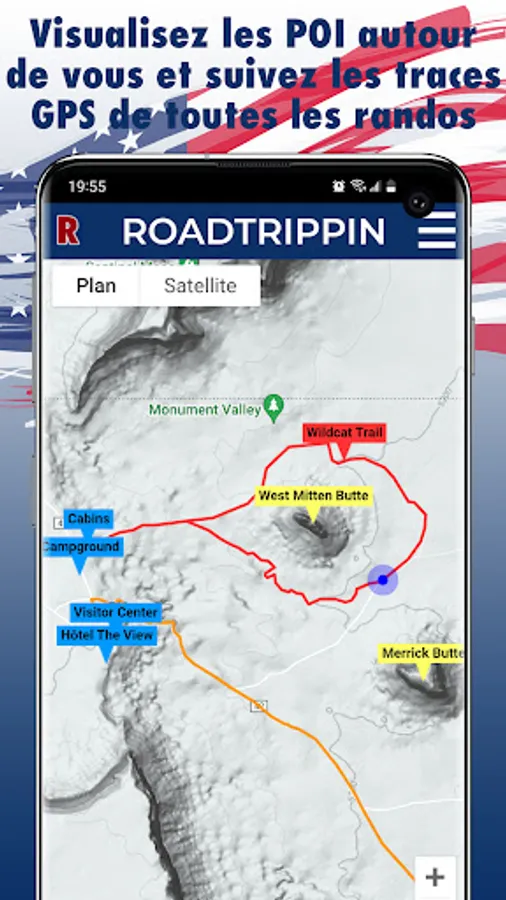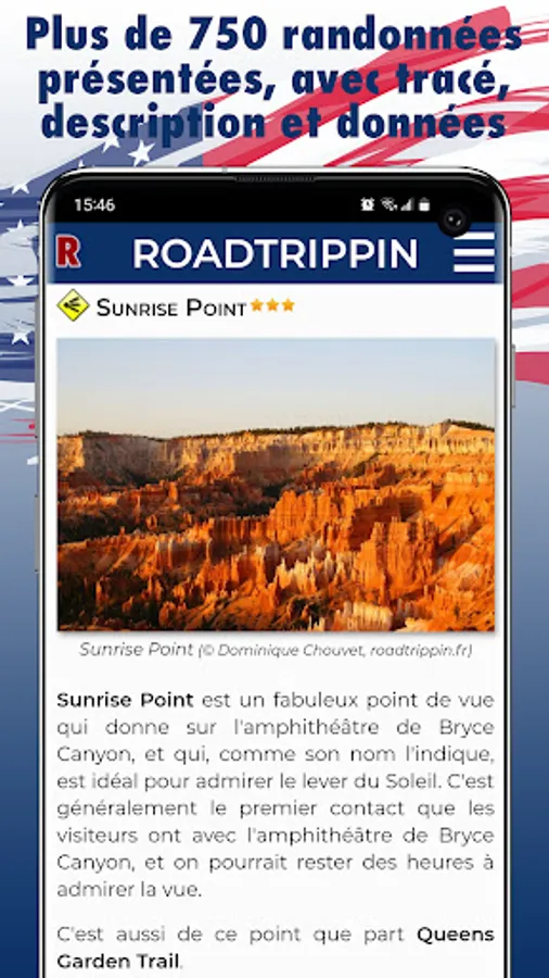 An interactive map allowing you to display in real time your position and the viewpoints and points of interest located around you (1500 saved POIs), and to follow the routes of the surrounding hikes (750 referenced hikes).
