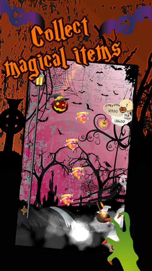 Drive the bouncing pumpkin simply by tilting the cell phone left and right. Touch the screen to accelerate upward or to brake. Avoid the hidden enemies and beware of the effects of gravity!