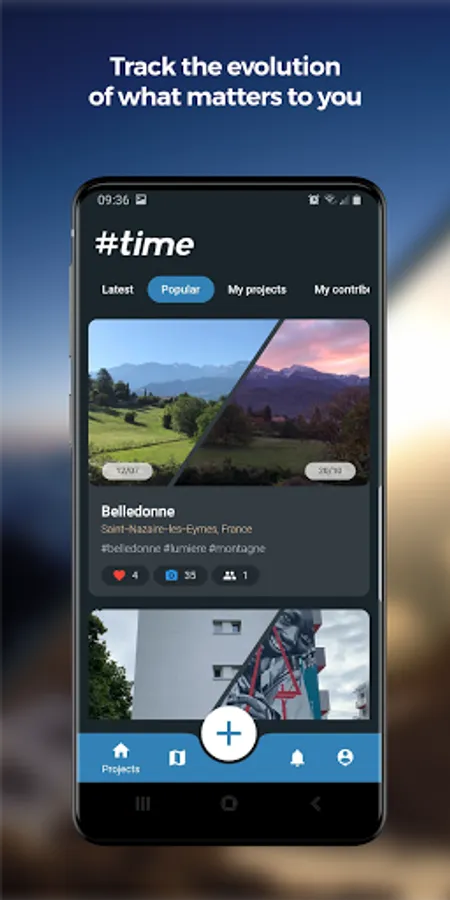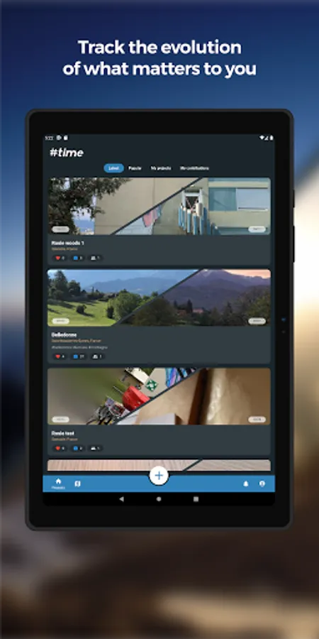 For those who are looking for a tool allowing to follow long-term phenomena or everyday changes (the evolution of their environment, the passing seasons, work on their house, or any other project that were yet impossible to share), Enlaps has created the first collaborative mobile application using time comparison (before / after images) thus generating a new high-engagement video media: #time.