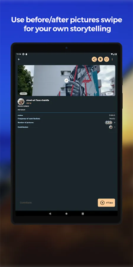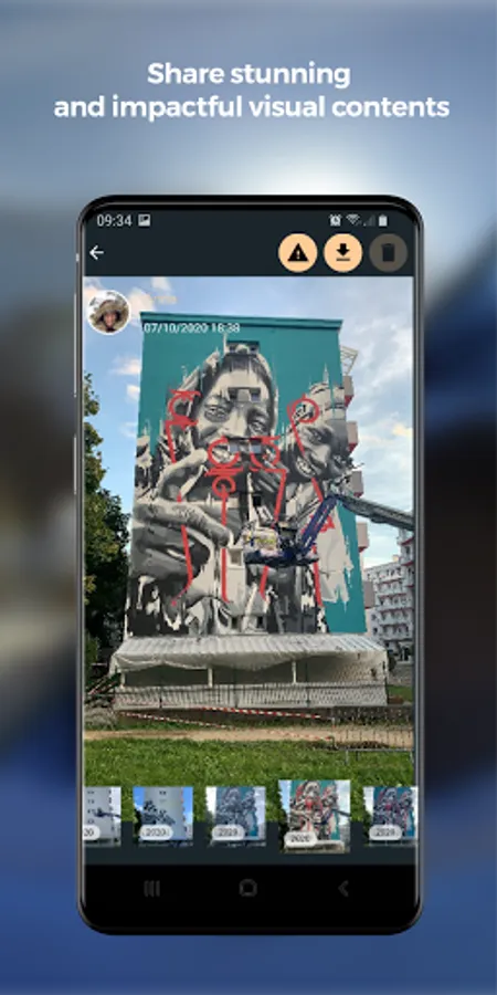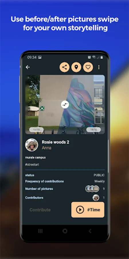 Quickly visualize the progress of your project using the picture comparison tool or from the automatically generated media: #time and share this unique experience on your social networks.