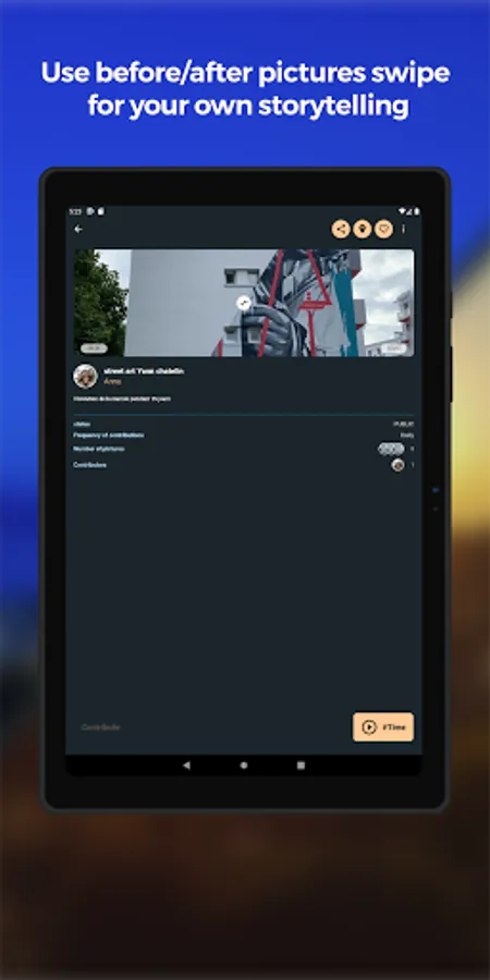 #time offers all the tools (geolocation, visual aid and a picture repositioning algorithm) allowing you to place yourself - or any contributor - in the same shooting conditions.